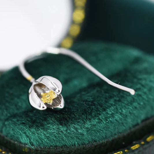 Snowdrop Flower Drop Earrings in Sterling Silver