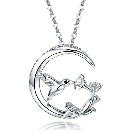 Moon Bird Vintage Silver Pendant Necklace